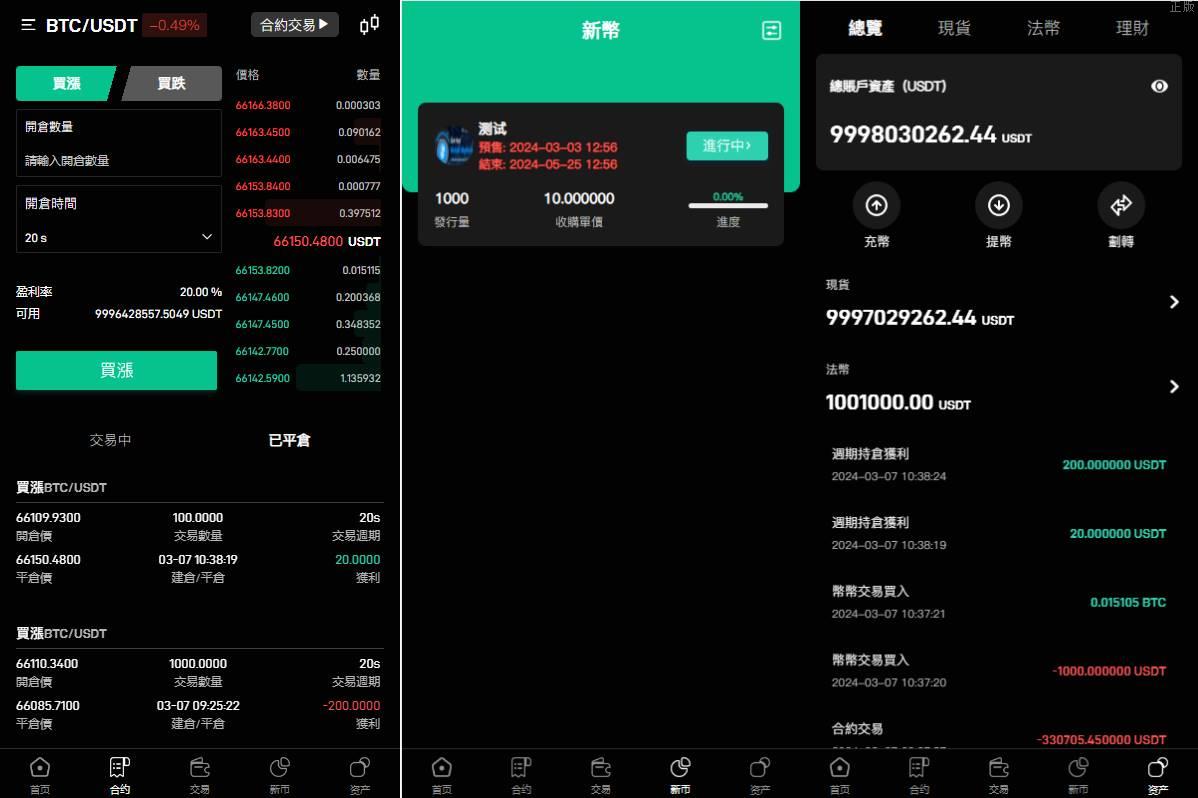 多國語言交易所系统/秒合约交易/币币合约/c2c/质押投资 亲测多國語言交易所系统,手机pc端均为uinapp开发,后端PHP的FastAdmin框架 系统功能很全了,ui也不错功能支持:币币交易、合约交易、秒合约交易、c2c、认购、理财等 源码全开源,带前后的纯源码,带完整教程脚本