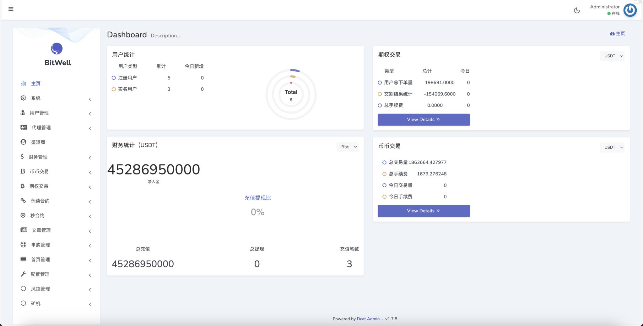BieWell多國語言交易所/15国语言交易所/OTC/永续合约/期权交易/币币交易/秒合约交易/申购/矿机/风控/代理渠道商 语言:15种语言 前端wap+pc都是编译后的,也是二开了很多的功能,具体的话看图片,UI这些倒是蛮不错的 遇到的问题:workerman启动有点问题,采集是正常的,wss不能推送