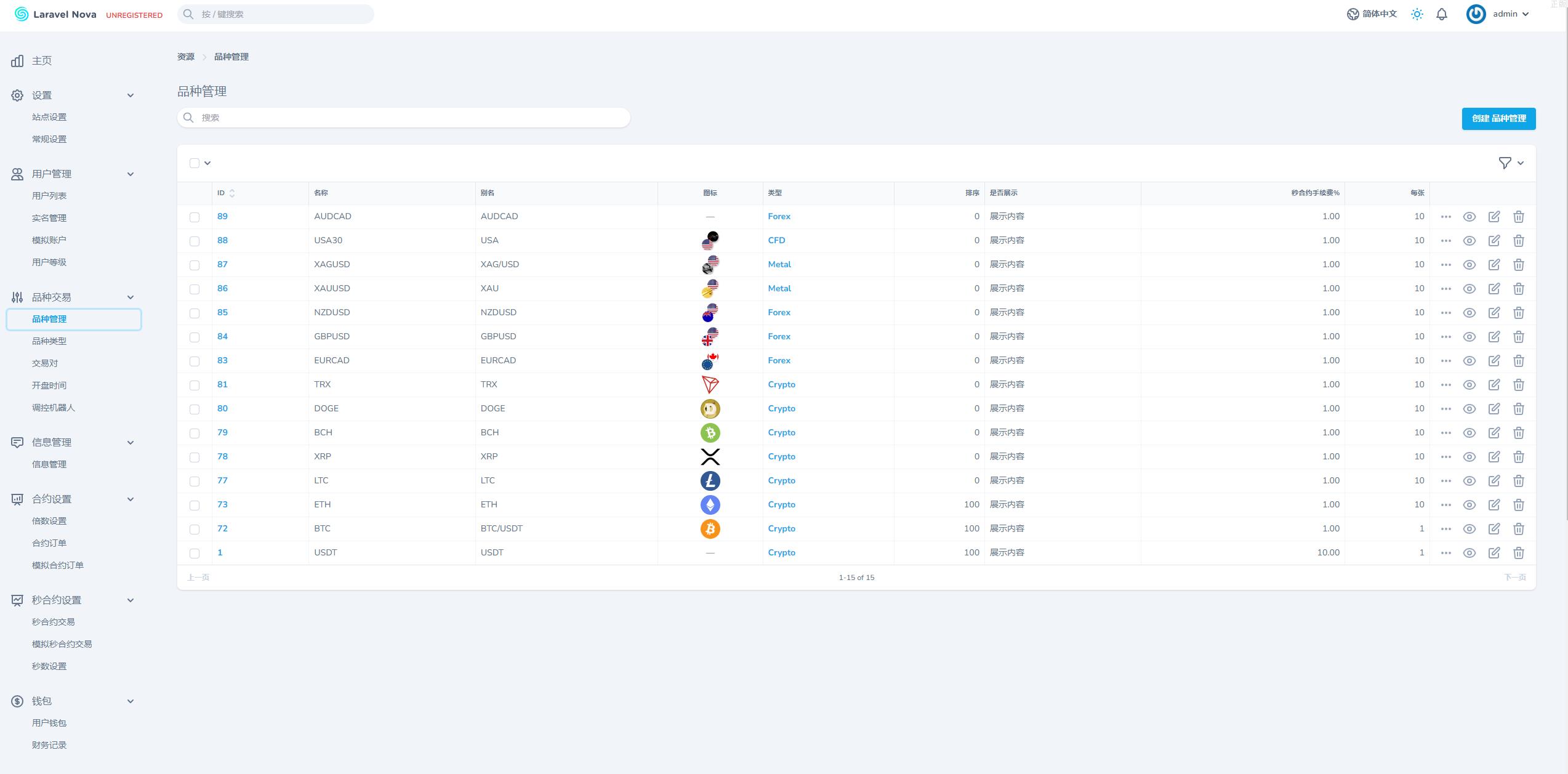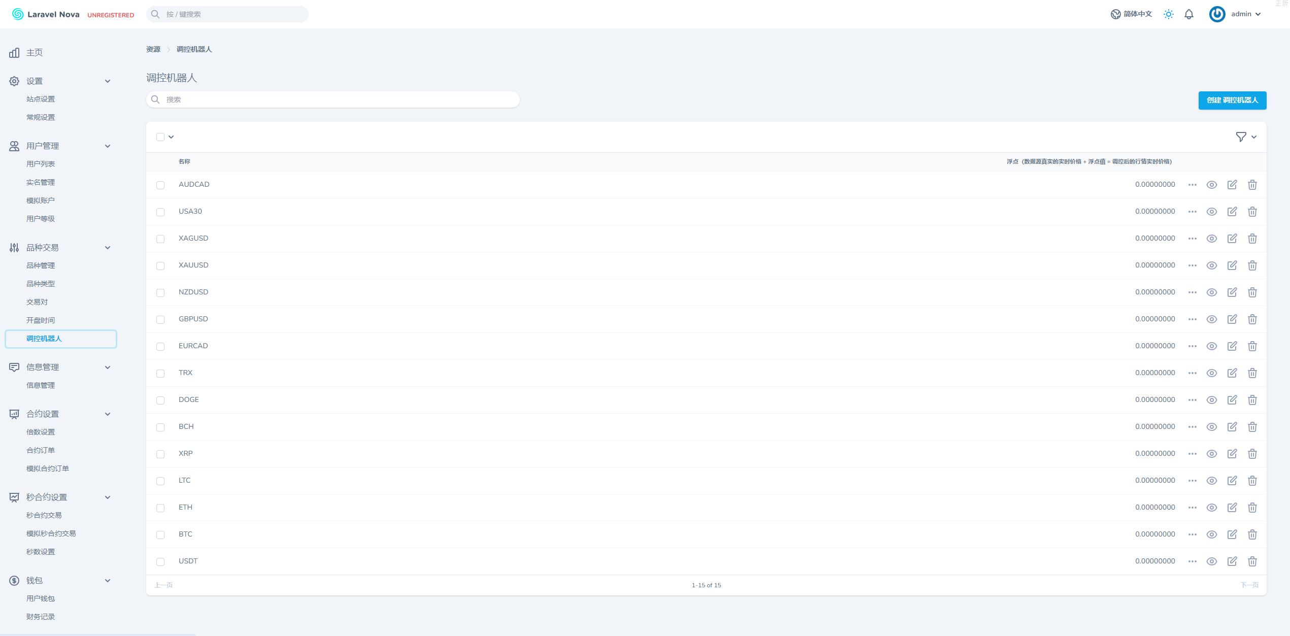 后端是laravel的 前端uniapp,代理端vue,外汇接口是阿里云,数字货币接口是火币ws,k线数据使用es缓存,经测试全部币种k线可控制,设置上涨下跌浮点