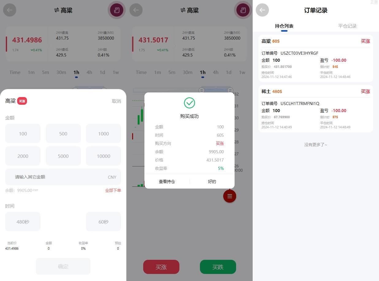 系统前端是全新开发的,该有的功能都有前端K线正常运行结算