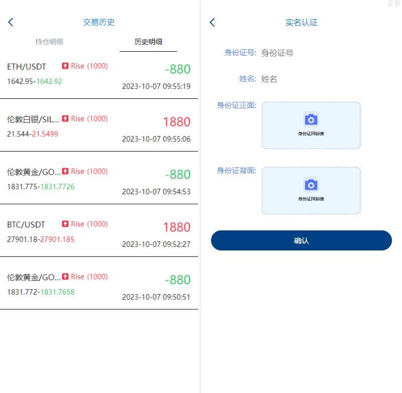 uniapp版微盘系统/虚拟币微交易系统/伪交易所系统 前端uinapp全新开发带源码,后端thinkphp框架,源码全开源无加密 k线全部正常,对接2个真实黄金白银数据其它为虚拟币数据,带余额宝理财、实名认证 前端语言为英语和中文,英文未翻译完整,可以二开增加其他语言