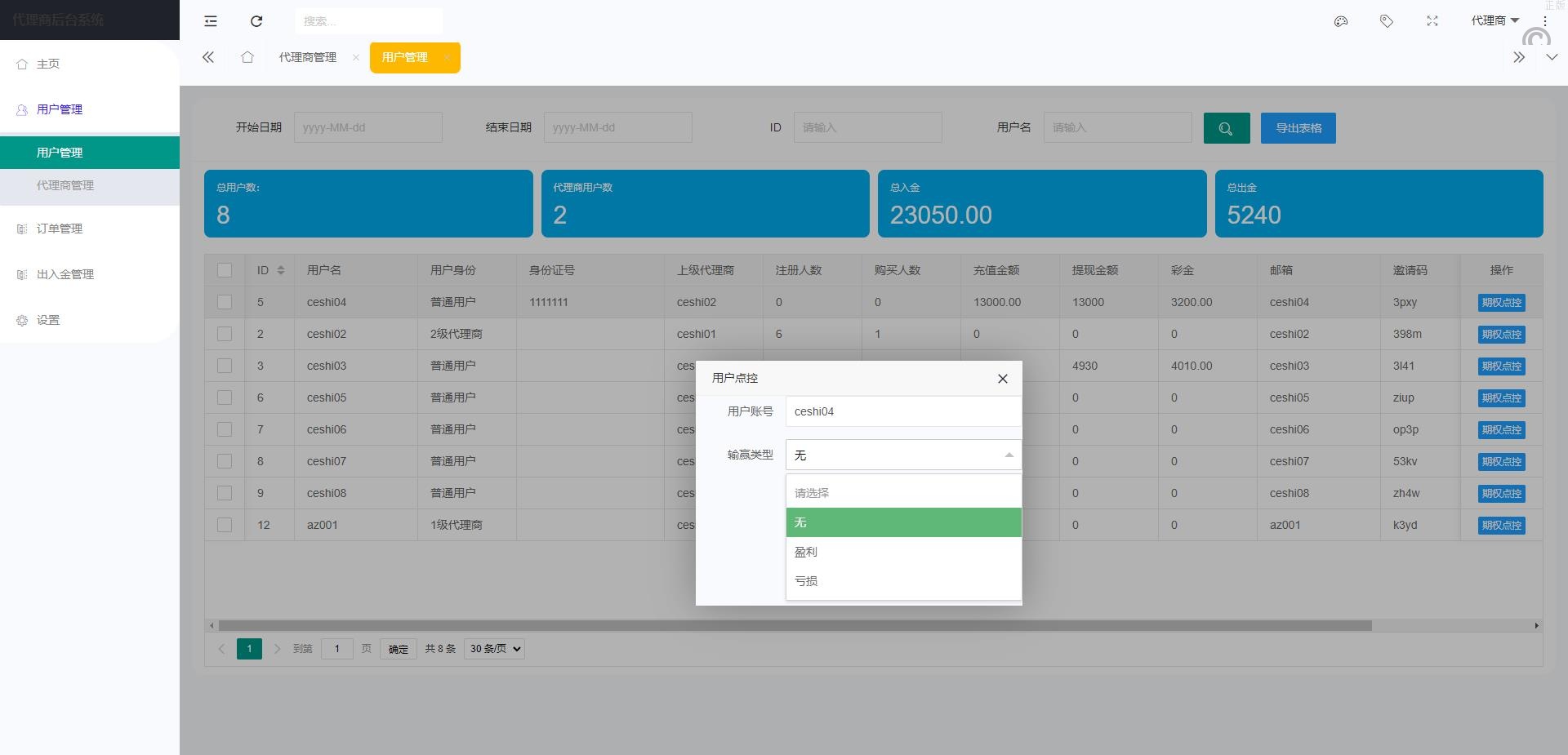5.增加赠送彩金功能(后台统计不计算赠送彩金的统计)
