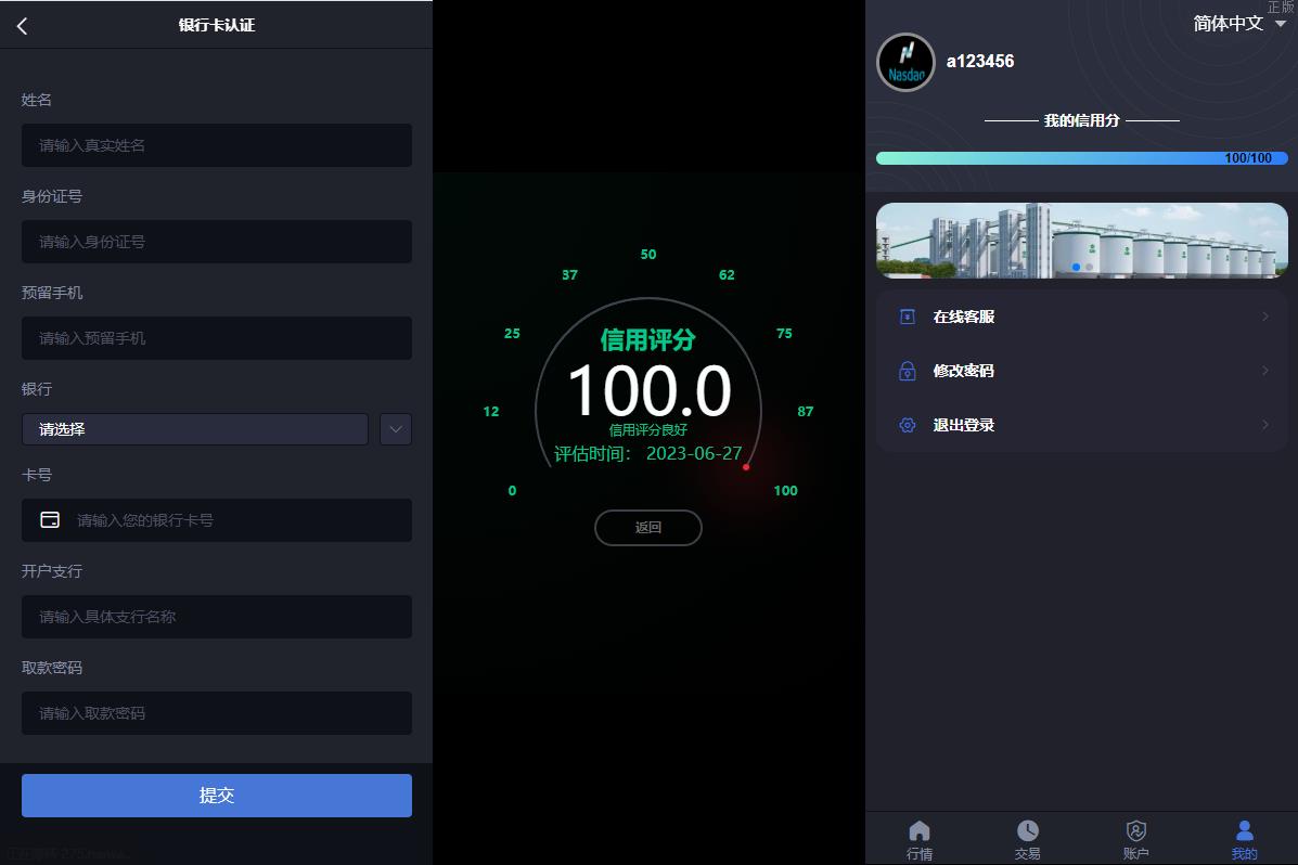 前端功能简洁,K线UI优美,用户信用分后台可更改
