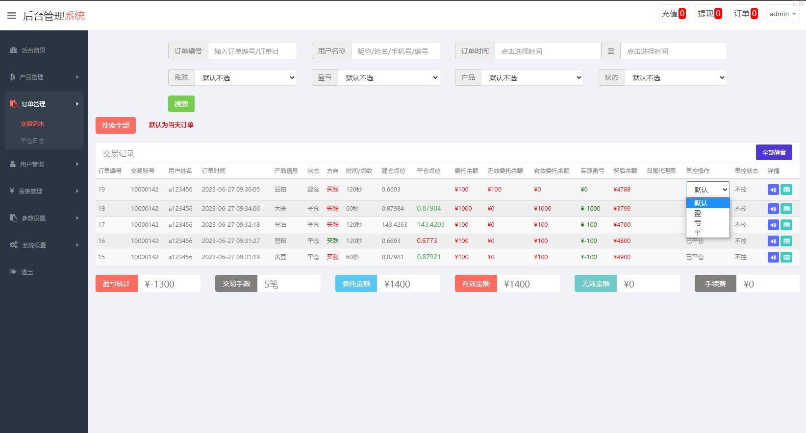 运营版微盘期货交易系统/微交易源码/代理后台/用户风控