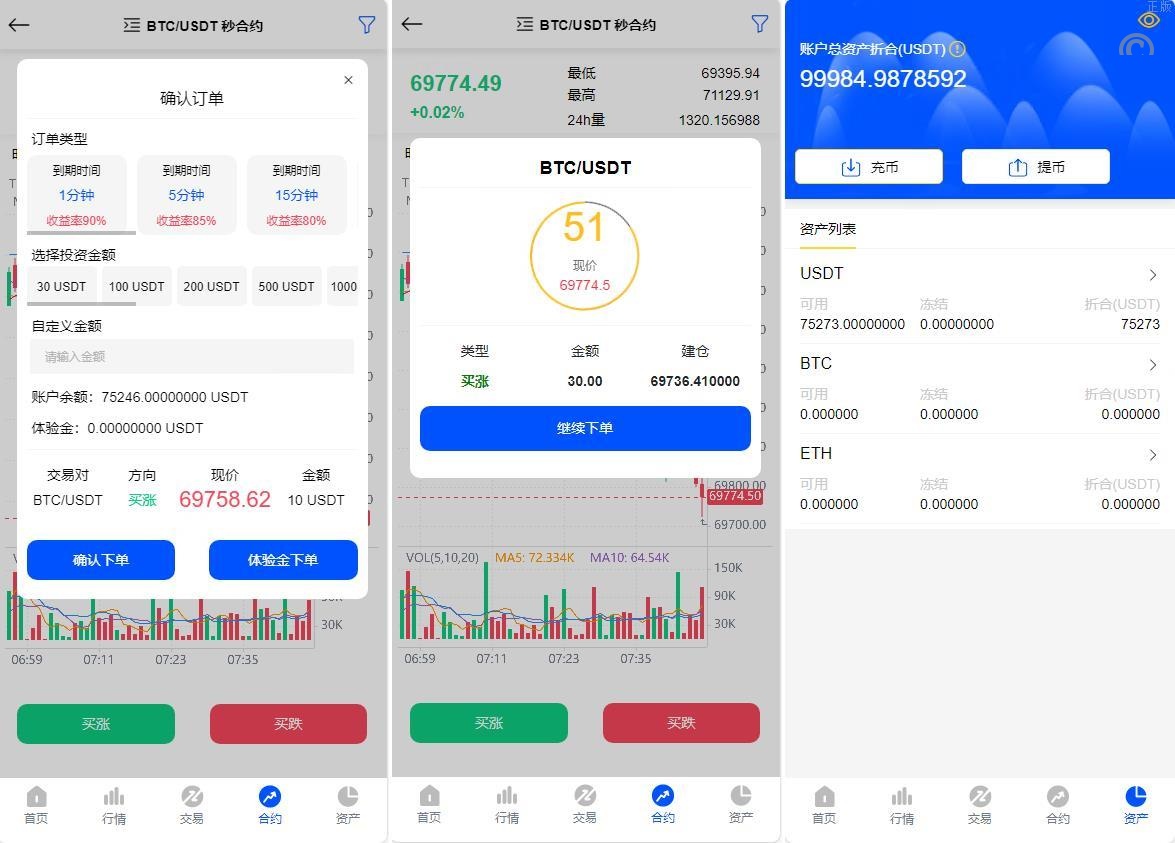 全新UI多國語言微盘秒合约优化修复版/虚拟货币交易/余利宝理财