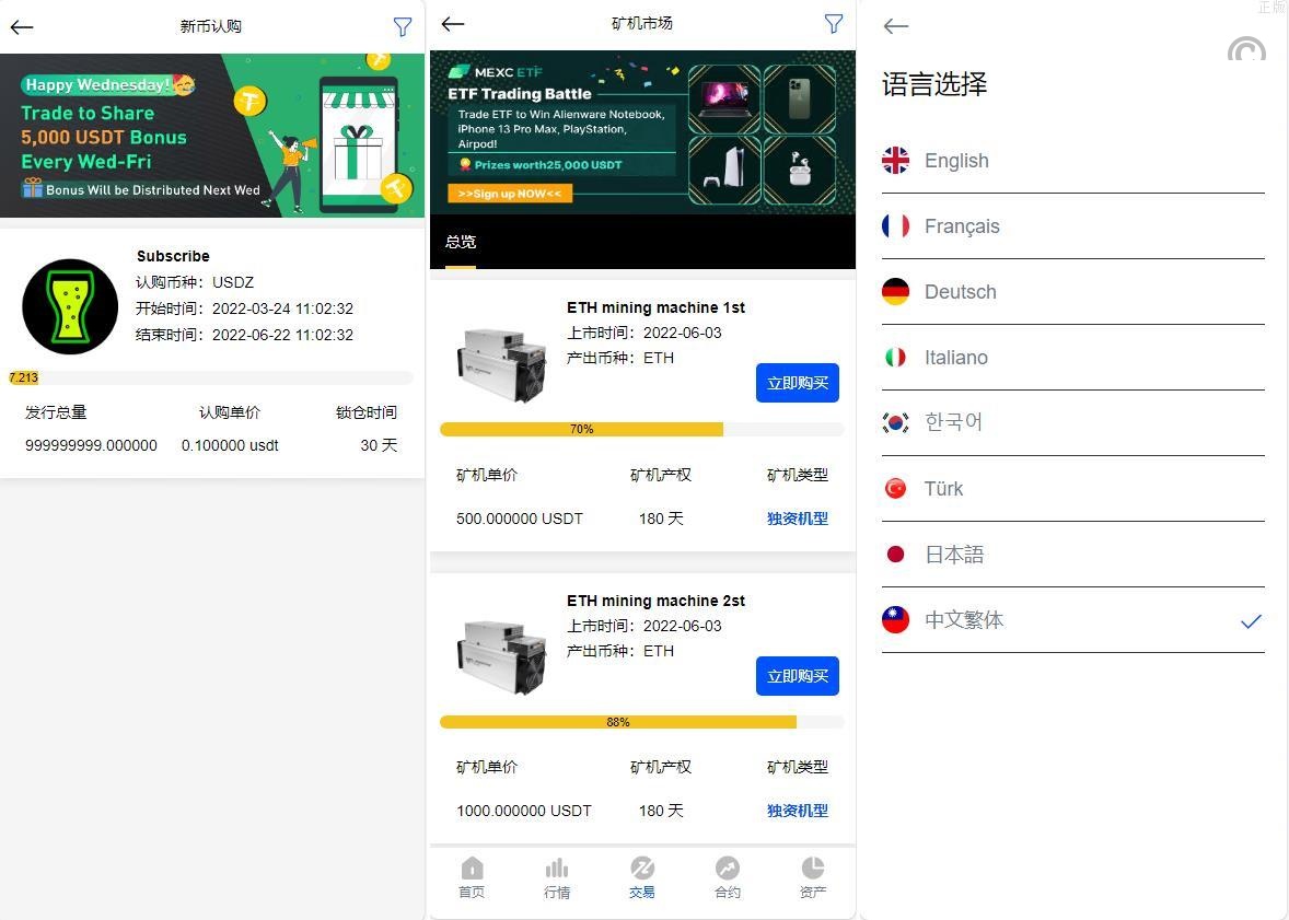 多國語言区块链交易所/微盘时间盘挖矿秒合约/币币交易/新币认购