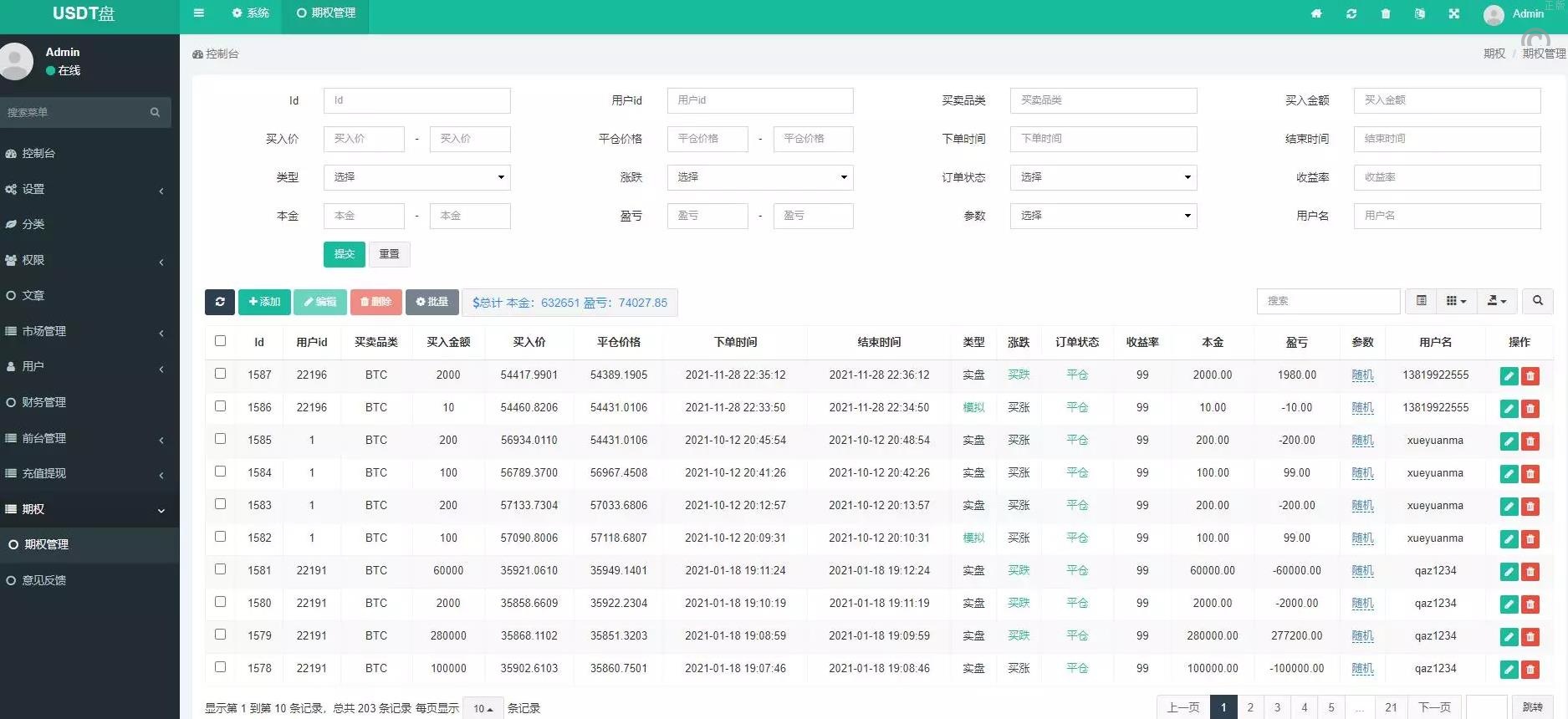 USDT微盘系统/微盘外汇系统/微交易/虚拟币竞猜 USDT微盘系统/微盘外汇系统/微交易/虚拟币竞猜 此系统见过的应该都很眼熟,这是一套后端fastadmin框架开发的微盘系统 USDT充提,双语言,源码包含VUE源码,非泛滥的只有打包的跟一个成品APP 源码K线现在失效了