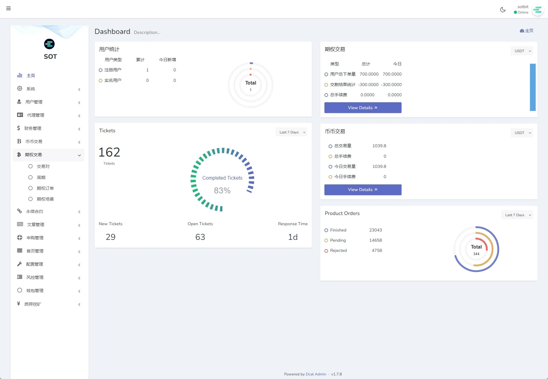 1、平台概况(实时行情、高端K线、BI数据分析、币种统计、用户统计、交易统计、异常用户)