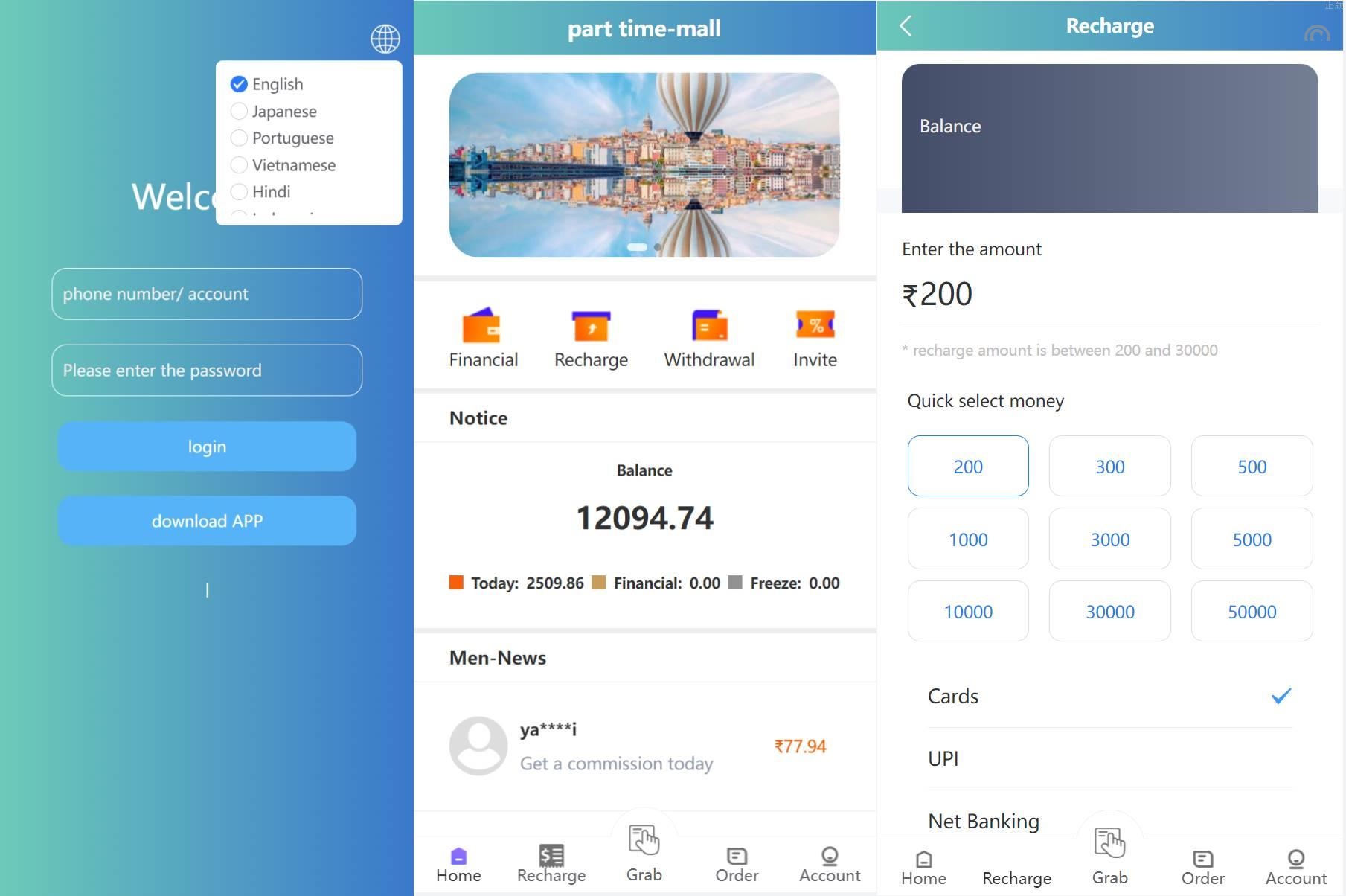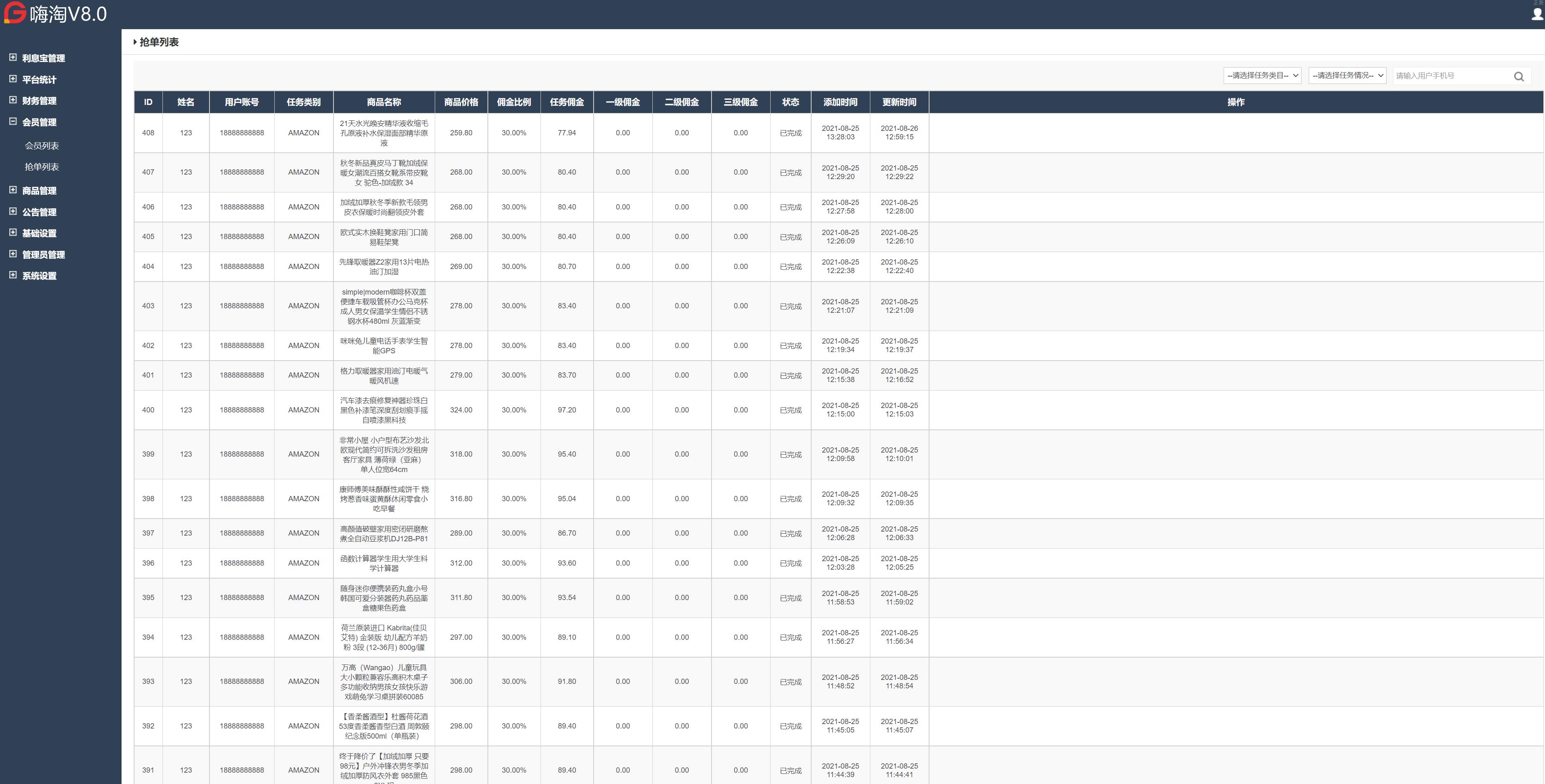 特惠VUE版抢单源码刷單系统源码/多國語言订单匹配系统/特惠抢单刷單源码 VUE版嗨淘搶單系統/多國語言订单匹配系统/特惠抢单刷單源码 前端vue源码,嗨淘六国语言(巴西、日本、印度、印尼、英文、越南)抢单源码,后台为中文。
