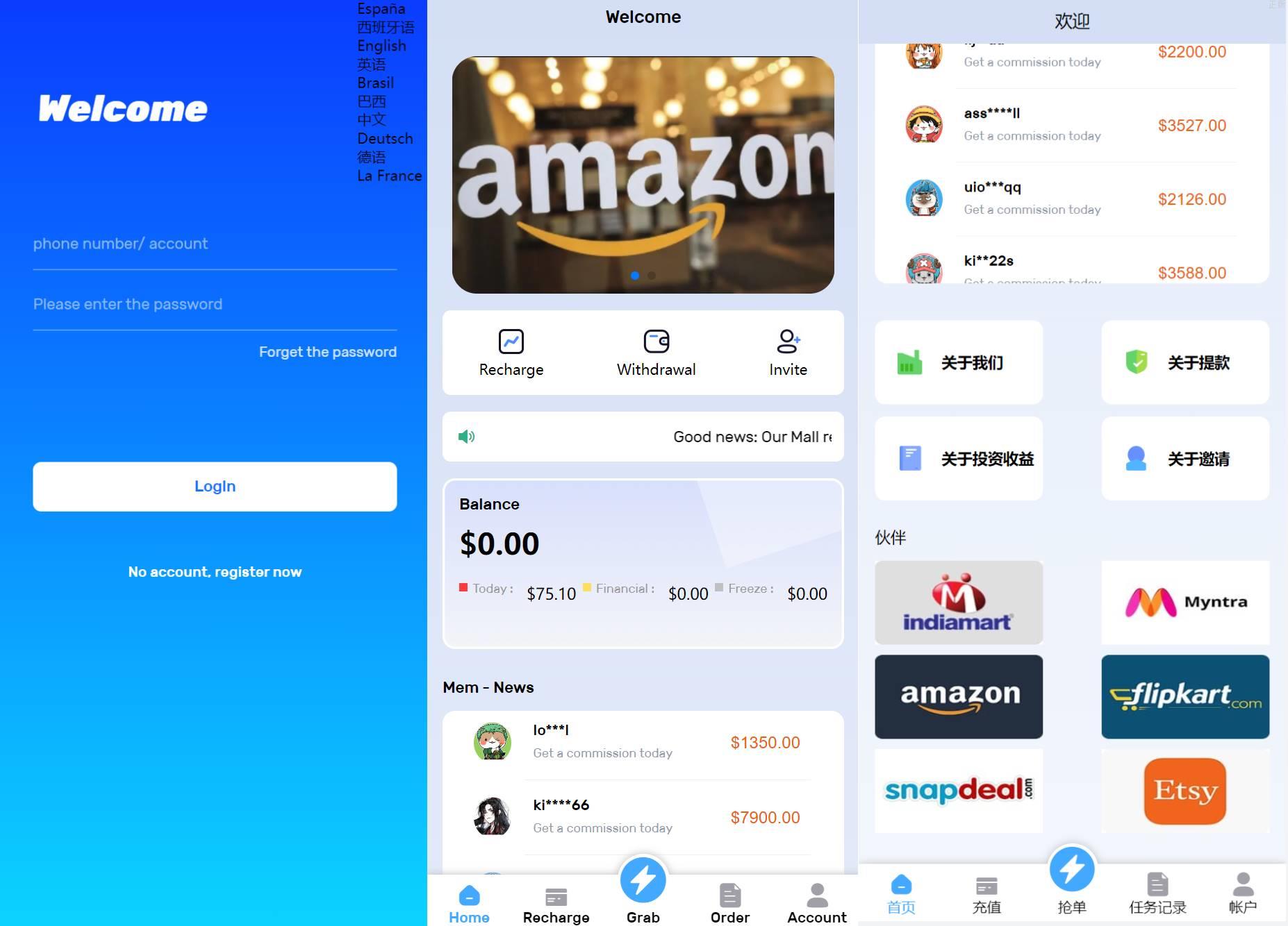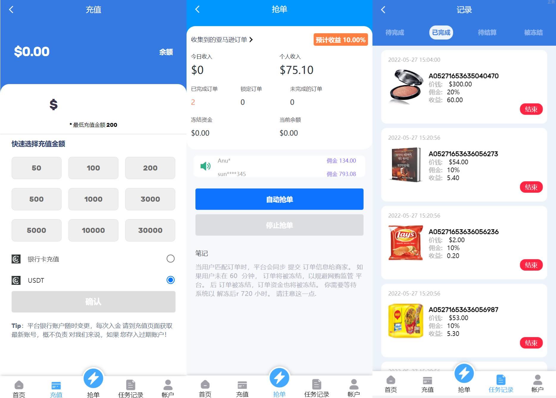特惠多國語言亚马逊自动抓取订单系统源码/返佣系统/叠加组/电商抢单刷單系统 多國語言亚马逊自动抓取订单系统/返佣系统/叠加组/电商抢单刷單系统 源码是开源,无加密,无后门(支持任何二开功能) 优化手机端页面,解决手机端加载慢的问题 邀请功能-可自建团队,获得更多佣金,升级会员等 自动抓取亚马逊订单,可以停止抢订单-抓取订单做任务