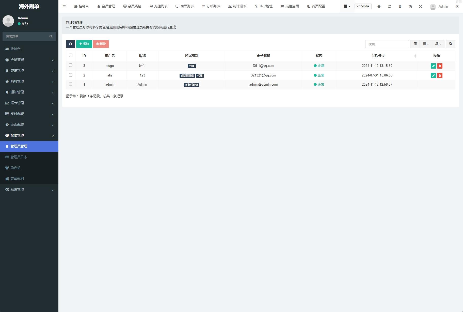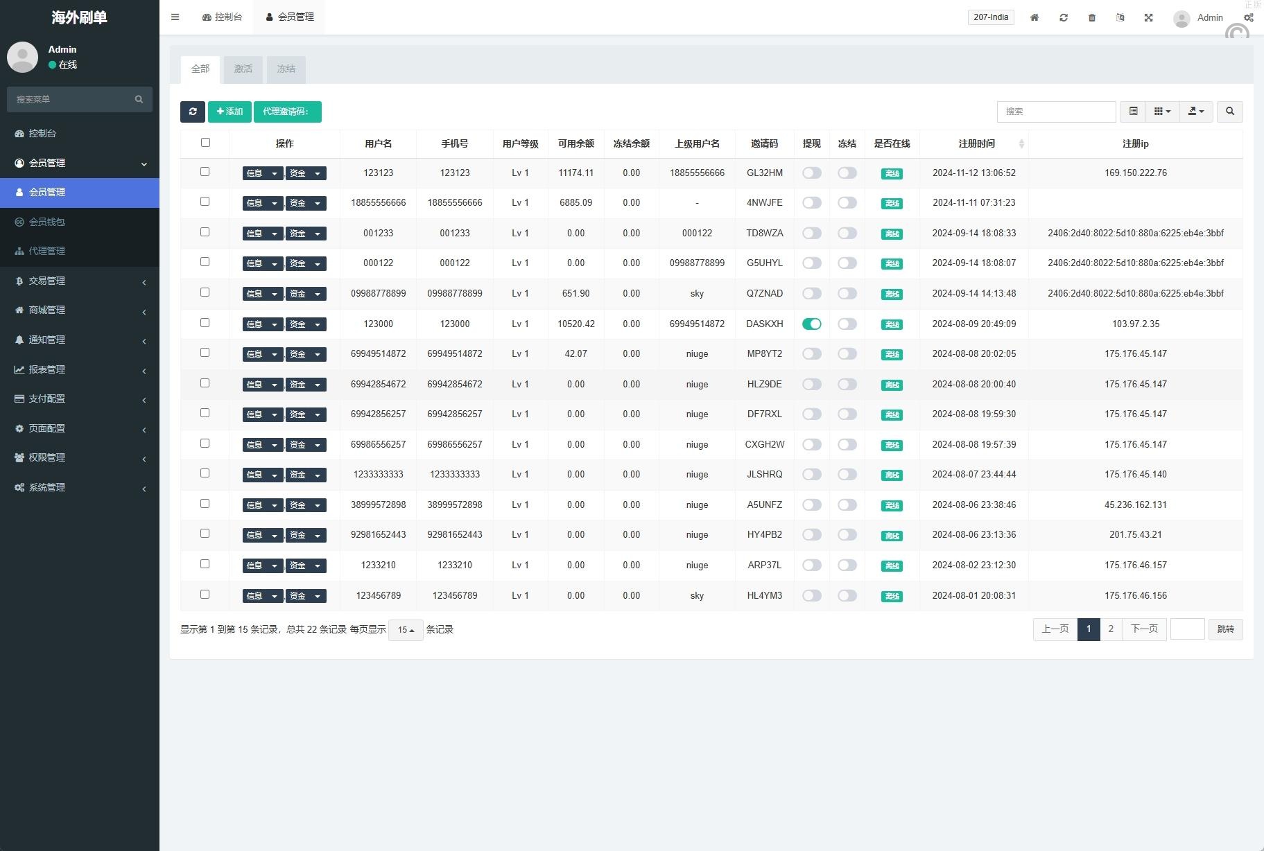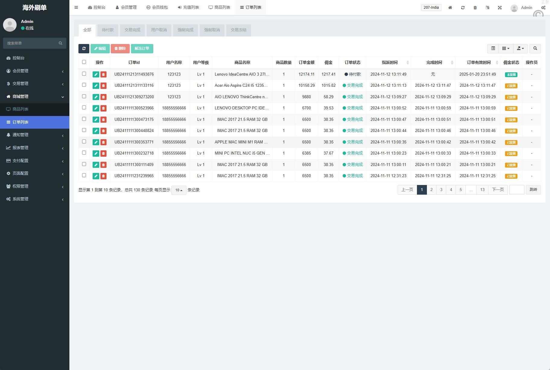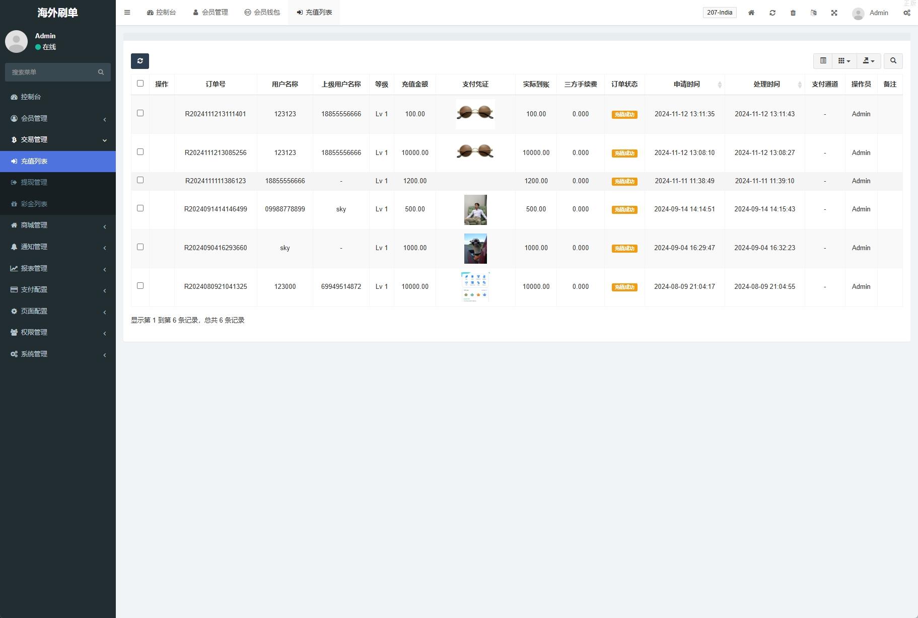 亲测多國語言TikTok抢单刷單系统/40单任务快杀盘/前端VUE 前端vue开发10国语言后端php全开源带教程 系统核心指派订单: 自由设置每一个订单的金额及佣金比例,亦可直接设置1-40单;若设置的订单金额超过用户余额,则显示:请充值XXX元,以获得佣金XXX元。 支持设置用户信用分; 支持设置新用户注册送; 支持单独设置某用户禁止提现,或冻结; 支持权限代理后台