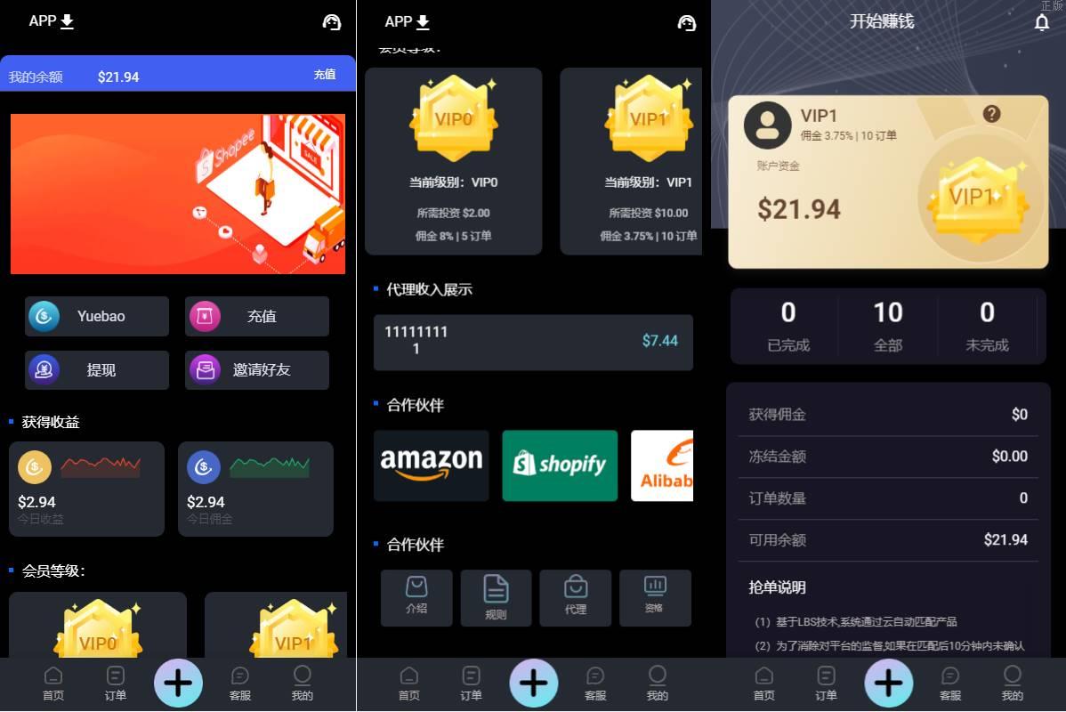 1.会员自动匹配订单,获得佣金收入。
