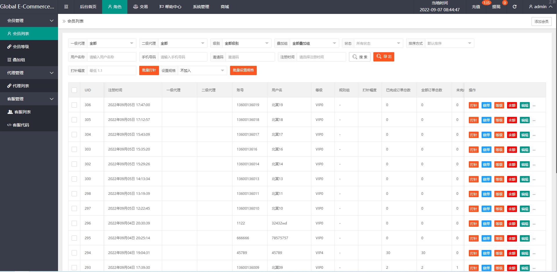 5.三级分销,带客服,等级优先,充值提现优先完美后台查询功能