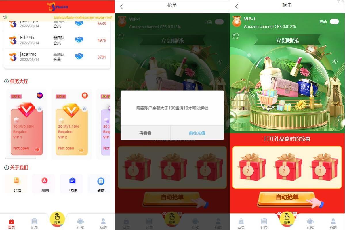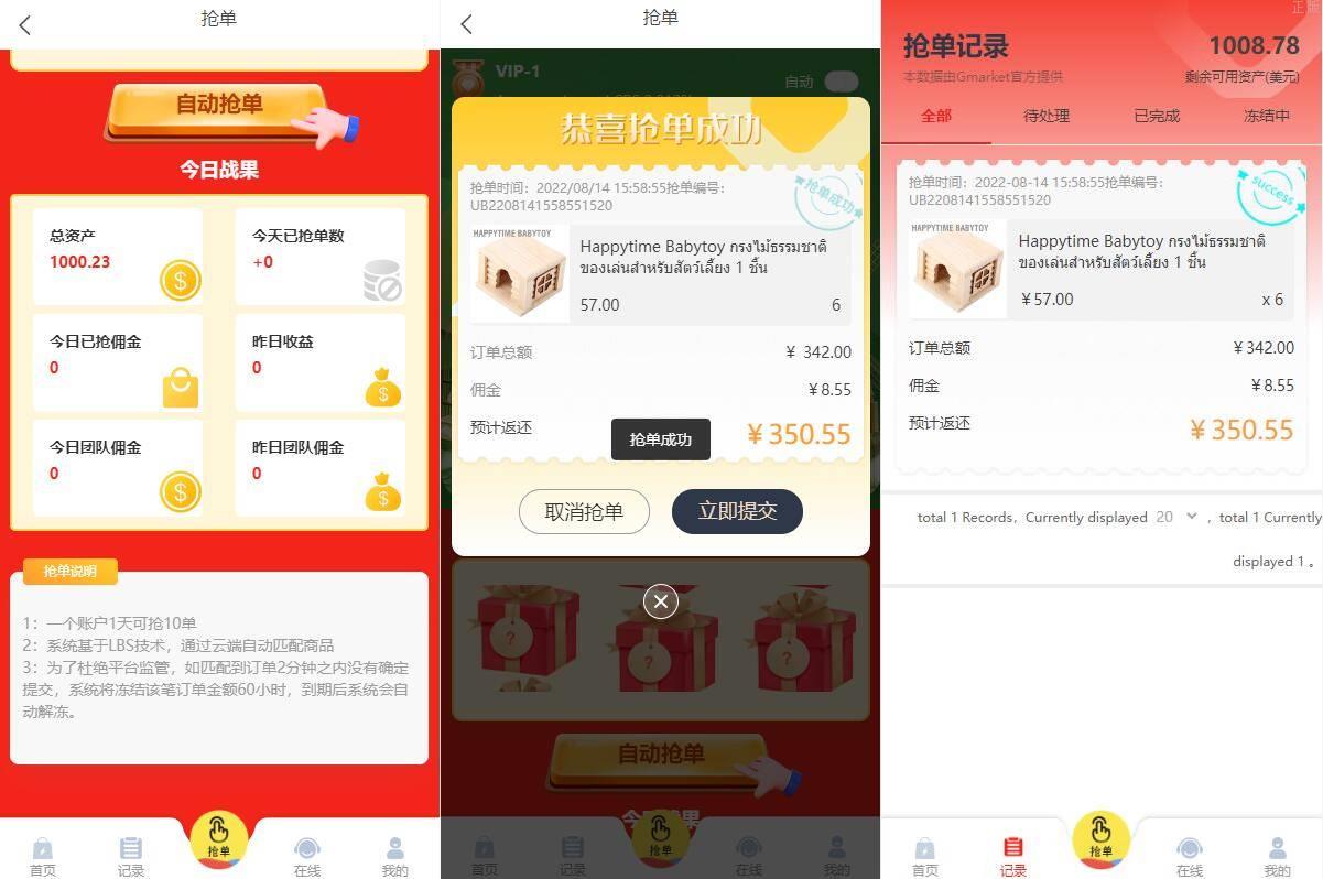 多國語言四套UI特惠抢单刷單系统/订单自动匹配系统/分组杀/连单控 多國語言四套UI特惠抢单刷單系统/订单自动匹配系统/分组杀/连单控 此套系统可以说是抢单的天花板了,该有的功能应有尽有 前端9种语言后台任意设置开关,前端四套UI后台任意切换 功能支持分组、百分比、固定值、连单设置、充值彩金等众多功能 源码不便宜,觉得贵的勿联系,支持定制其它UI
